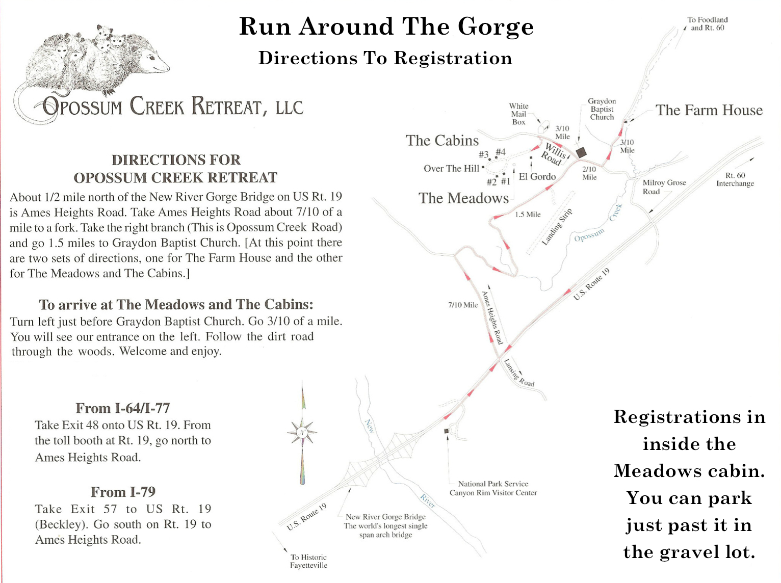 The race is based at Opossum Creek Retreat which is just a few miles from Fayetteville, WV. View Larger Map |