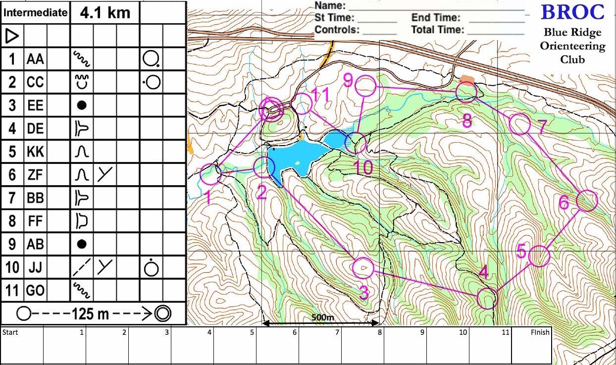 A 1:15000 map for a BROC orienteering event at Pandapas Pond. |