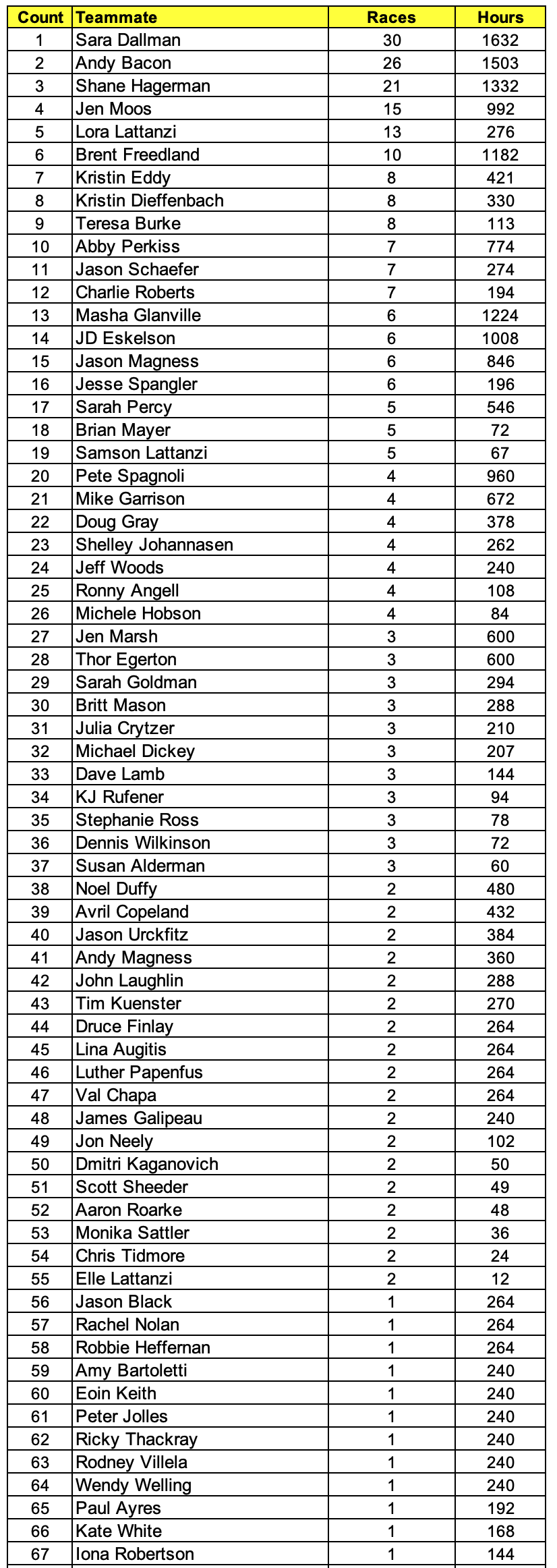 Teams Raced On