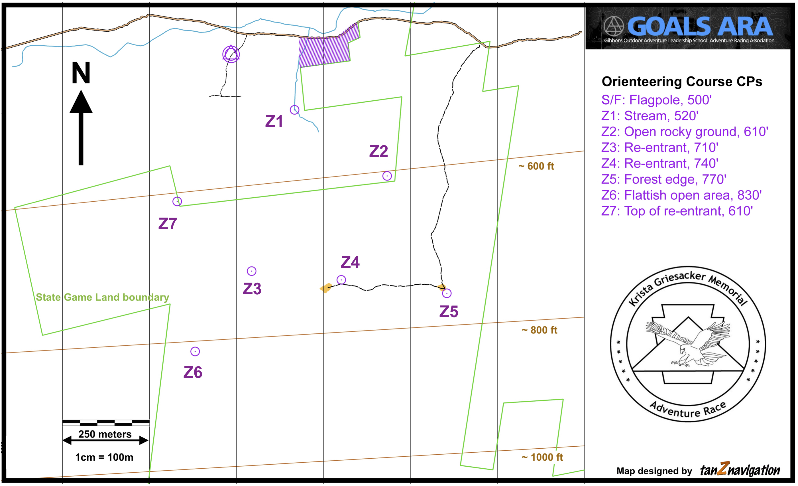 A unique map with no contours lines for the Krista Griedacker Adventure Race. |