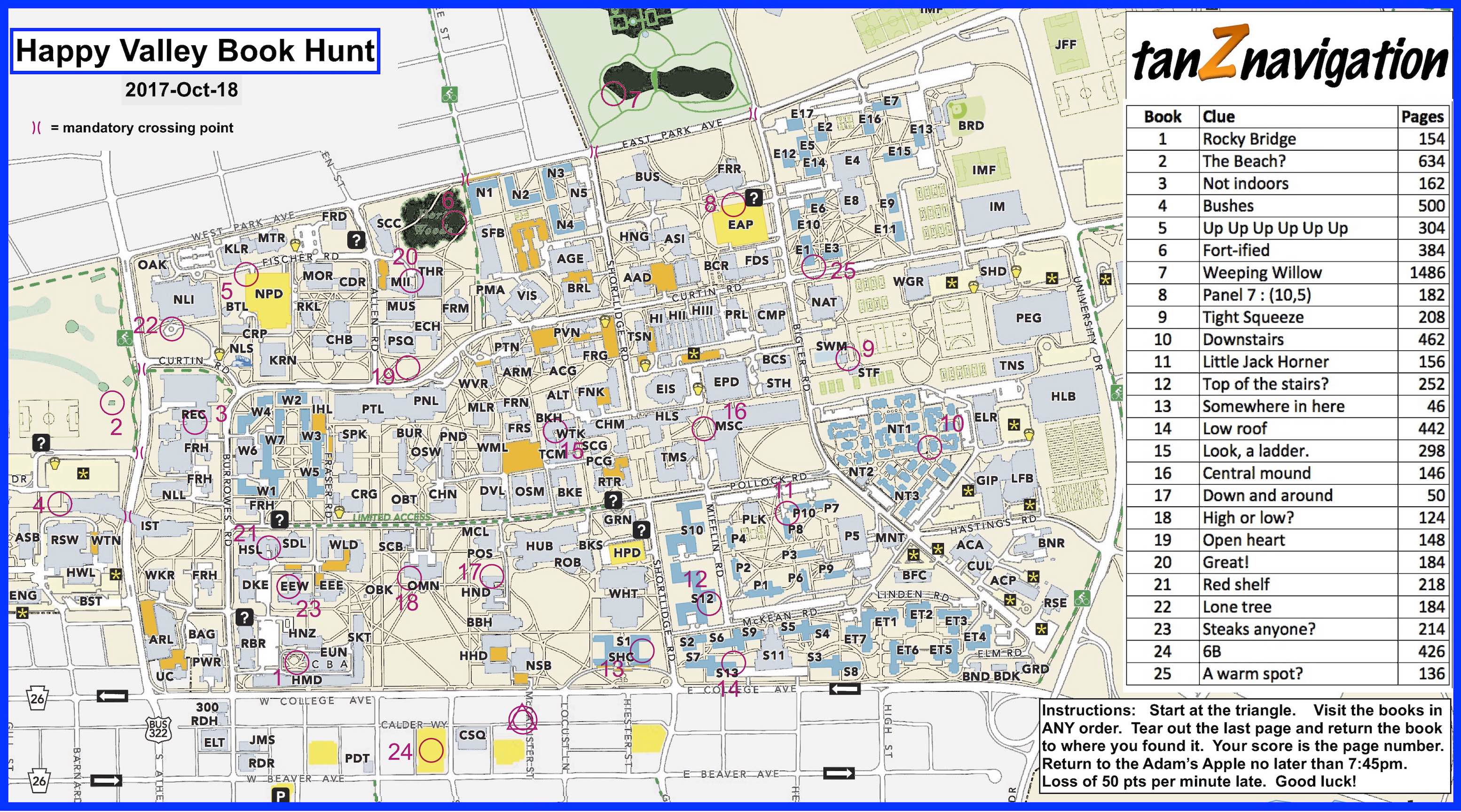 A 1:10000 map for HVOC Fall book hunt on the Penn State campus. |
