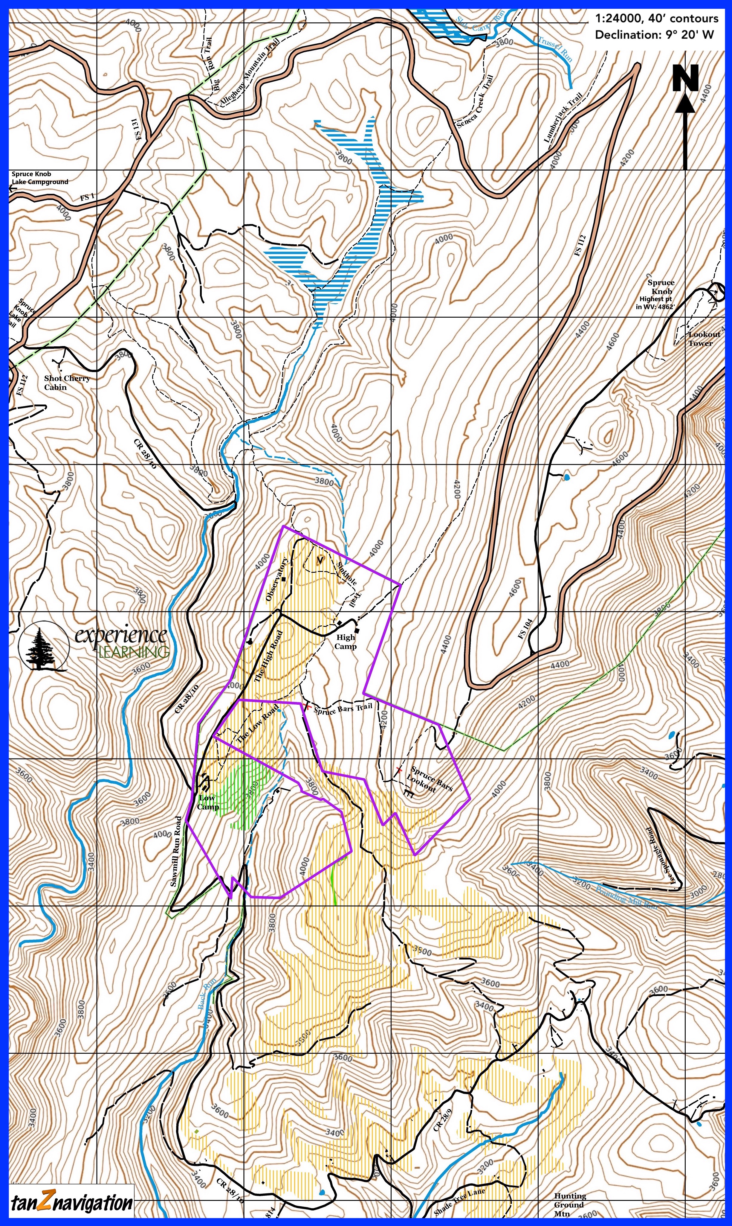 A property/trail map for the Experience Learning Institute on Spruce Knob, WV. |