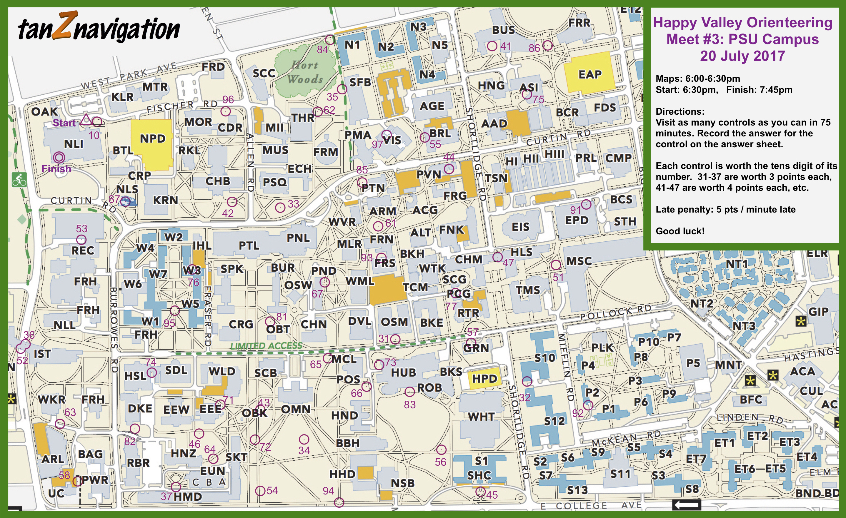 | 20 July 2017 | PSU Score Orienteering Meet | Nittany Lion Inn (In front of) | 6:00-8:00pm | Score O | Results |