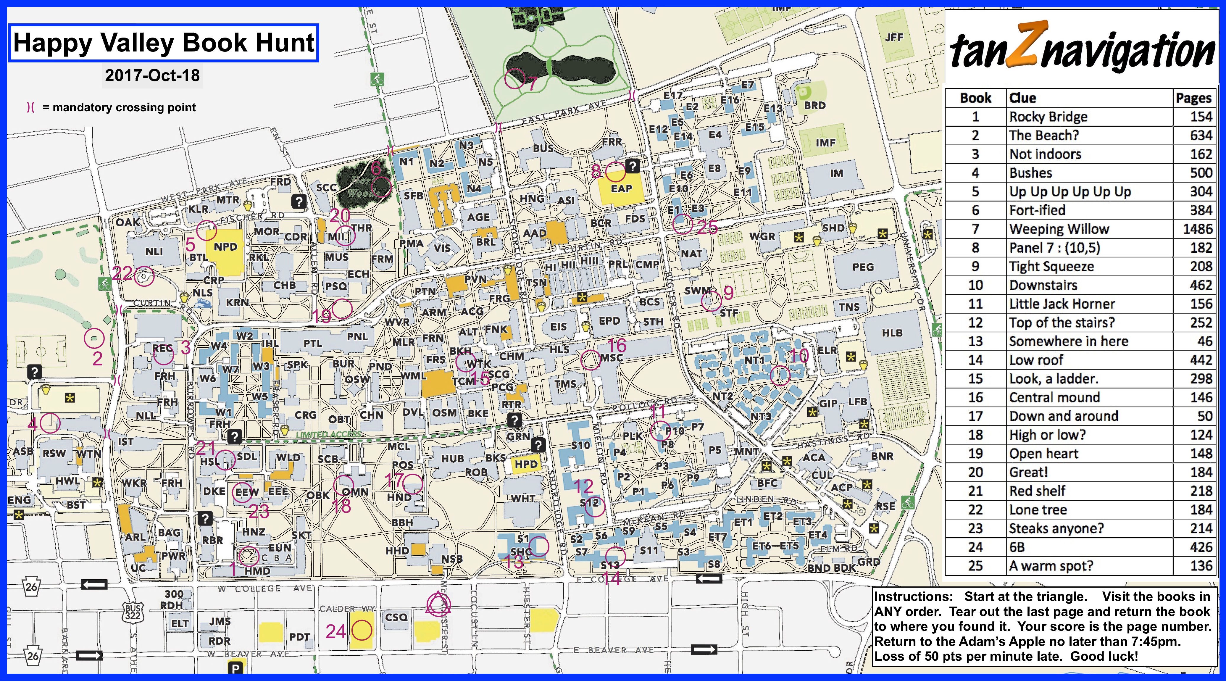 | 18 Oct 2017 | Book Hunt | Outside The Tavern (Adam's Apple) | 6:30-7:45pm | Map | Results |